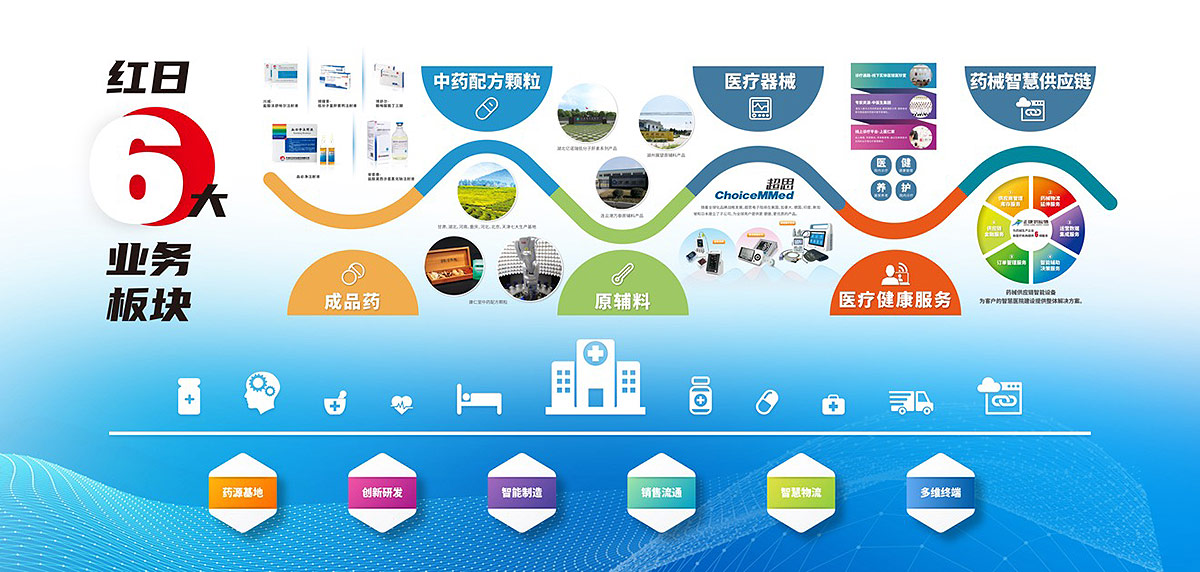 紅日藥業(yè)積極推進(jìn)全產(chǎn)業(yè)鏈布局。“原輔料”板塊旗下3家企業(yè)產(chǎn)品銷往50多個國家和地區(qū)?!搬t(yī)療器械”板塊依托“超思”血氧系列產(chǎn)品,打造居家養(yǎng)老和基層醫(yī)療新模式?!搬t(yī)療健康服務(wù)”板塊依托豐富的中醫(yī)生資源,打造“上醫(yī)仁家”線上中醫(yī)互聯(lián)網(wǎng)服務(wù)平臺、線下全國實(shí)體連鎖中醫(yī)館。“藥械智慧供應(yīng)鏈”板塊打造藥械供應(yīng)鏈與物流延伸服務(wù)平臺,實(shí)現(xiàn)采購、物流、使用全過程數(shù)字化管理。