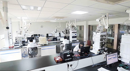 化驗(yàn)室面積達(dá)到1600平方米,做到布局合理、各室齊全,配備了滿足產(chǎn)品檢驗(yàn)需要的檢測儀器,并通過計(jì)量部門定期檢查和校驗(yàn),保證其準(zhǔn)確性,能確保原輔材料、包裝材料、中間體和成品的日常檢驗(yàn)。